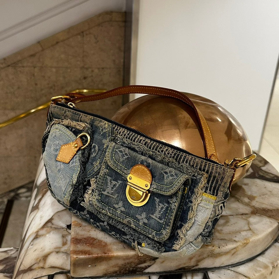 CELINE Macadam Boogie Denim Leather Hand Bag Blue